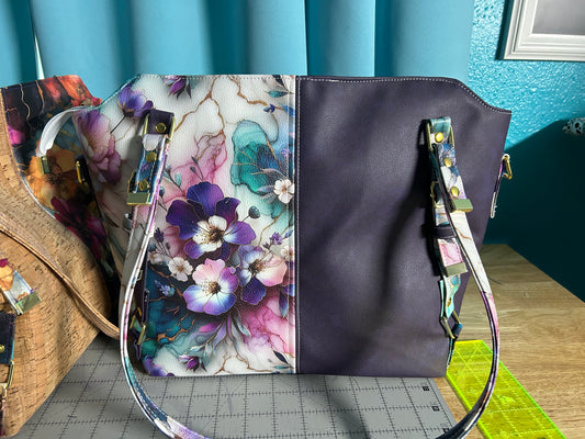 Purple Flower Faux Leather Handbag